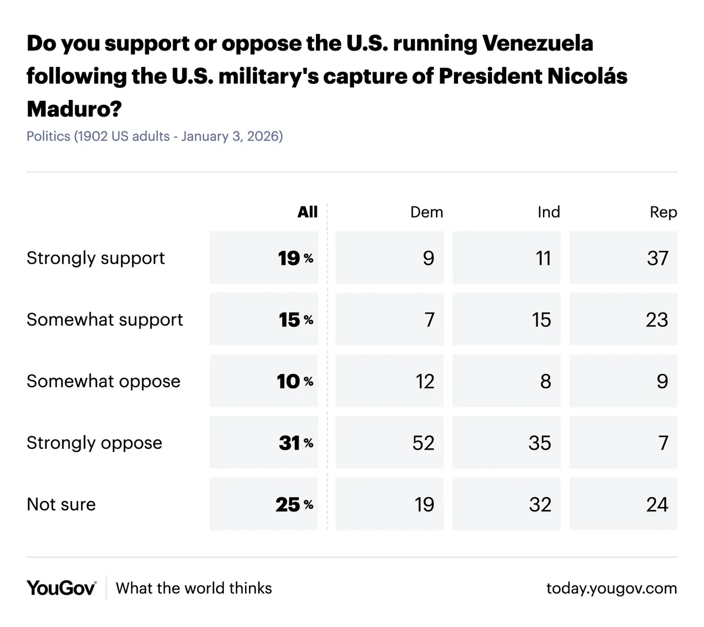 Трамп, безусловно, рассчитывал, что похищение Мадуро принесёт ему политическую выгоду. На несколько дней оно оттеснило из новостей дело Эпштейна. И Трамп действительно стремится отвлечь внимание от своих проблем, надеясь поднять свой рейтинг, пока нация «сплачивается вокруг флага». Однако его почти наверняка ждёт разочарование. До похищения американцы в подавляющем большинстве выступали против войны в Венесуэле. Первые опросы после похищения показывают столь же неблагоприятную картину: