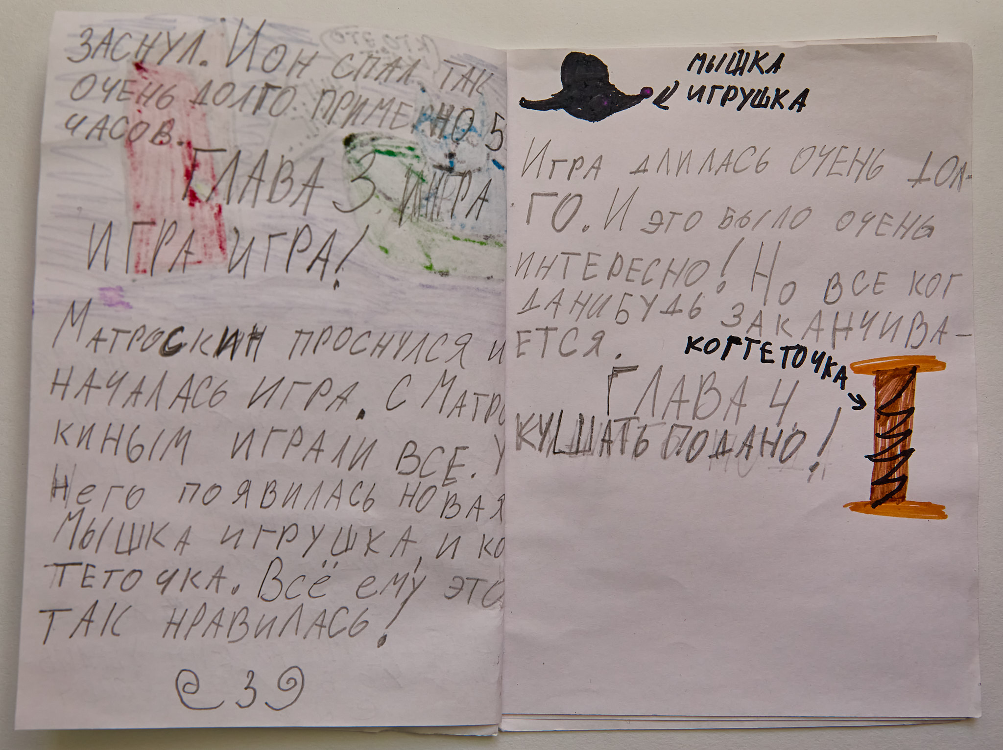 Когда он встал услышал што ктото идет. И это шла его новая хозяйка и хозяин. Хозяйку звали Полина а хозяин Саша, и ещё одна хозяйка Лена. Это семья очень хорошая. И Матроскин убедившись что всё хорошо снова заснул. Ионн спал так очень долго примерно 5 часов.