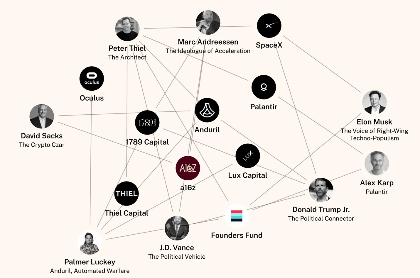 Как я уже писал ранее, эта «бралигархия» испытывает выраженную враждебность к либеральным ценностям в целом и к демократии в частности и даже не пытается это скрывать. Питер Тиль (Peter Thiel) открыто заявил, что больше не считает свободу и демократию совместимыми. Илон Маск (Elon Musk) высмеивал эмпатию и сотрудничал с немецкой неонацистской партией Альтернатива для Германии (AfD). Алекс Карп (Alex Karp), глава подрядной компании Пентагона Palantir, выражал надежду, что убийство беззащитных потерпевших кораблекрушение моряков будет признано конституционным, поскольку это позволит ему заработать больше средств на поставках Пентагону. Джо Лонсдейл (Joe Lonsdale), в свою очередь, выступал за возвращение публичных казней.