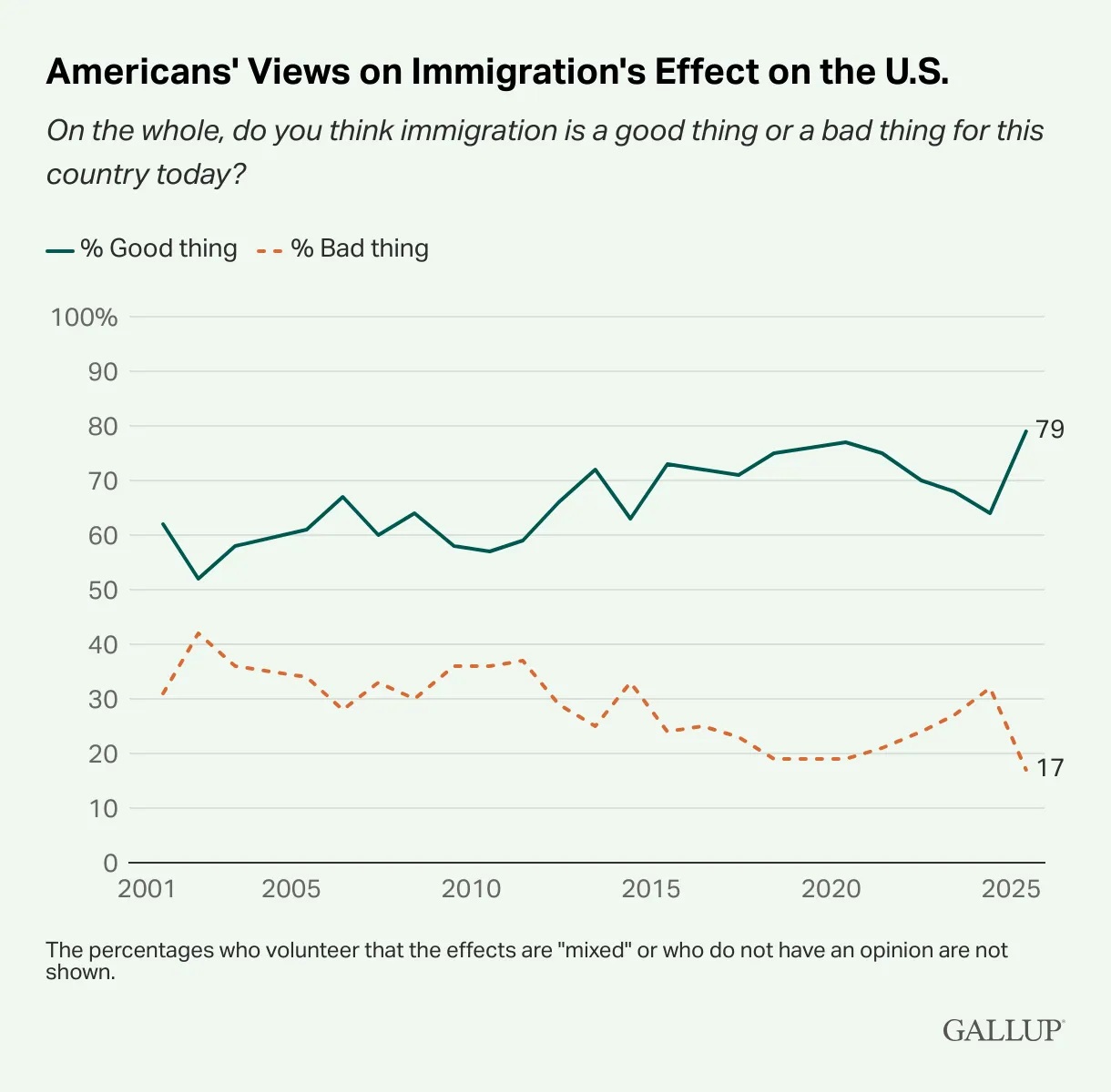 Может ли Трамп компенсировать это, разжигая культурные войны — вражду к иммигрантам или антивакцинные настроения? К сожалению для него, эти вопросы работают против него. Вера в то, что иммиграция — это благо для Америки, достигла рекордного уровня, а политика против вакцинации крайне непопулярна.