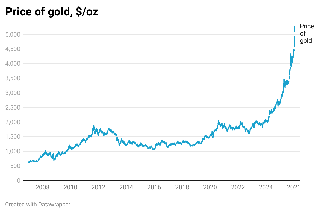 Взлетающие сегодня цены на золото являются следствием того, что финансисты называют «сделкой с уходом от страновых рисков» (debasement trade). Хотя эффект от этой сделки наиболее зрелищно проявляется в резком росте цен на золото и серебро, он также заметен в падении стоимости доллара и в росте долгосрочных процентных ставок.