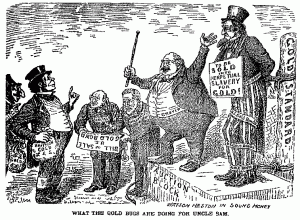 Как это ни парадоксально, это ещё сильнее разгневало оппозицию (фермеров). Дефляция разорила шахтёров и земледельцев, а действия Кливленда означали, что их бросили на произвол судьбы. К 1896 году сторонники серебра захватили контроль над Демократической партией. На национальном съезде в Чикаго речь Уильяма Дженнингса Брайана (William Jennings Bryan) «Золотой крест» (Cross of Gold) взбудоражила делегатов, и он получил выдвижение от демократов.