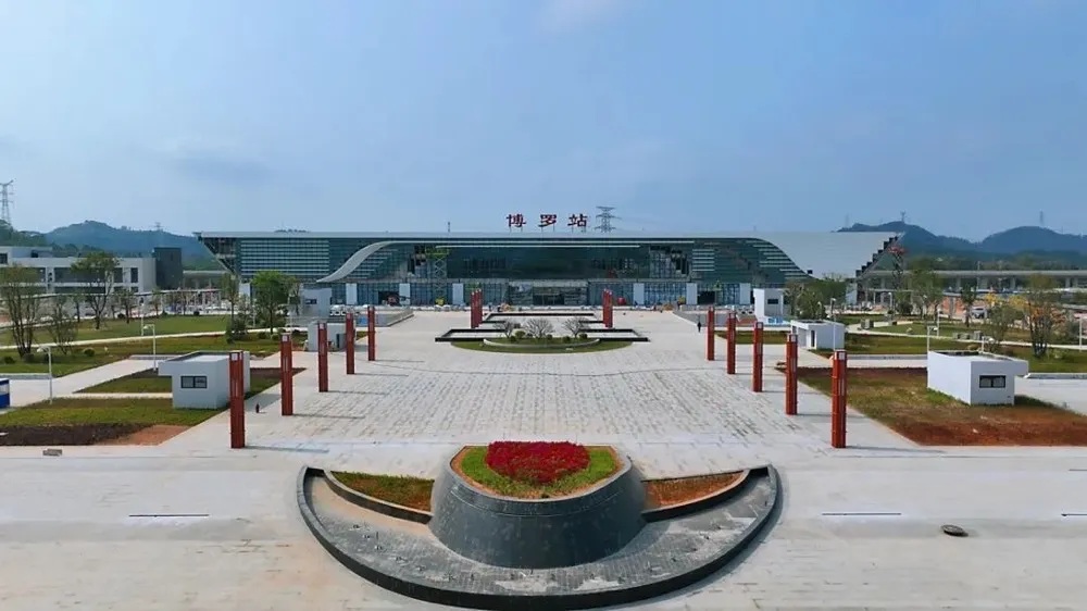 В уезде Болуо, одном из административных округов Хуэйчжоу, станцию высокоскоростной железной дороги возвели в небольшой котловине, окружённой невысокими холмами. Открытая в 2023 году и расположенная всего в восьми километрах от административного центра уезда, она, несмотря на площадь в 7 945 квадратных метров, вместимость до 800 пассажиров и современный элегантный архитектурный облик, по-прежнему остаётся в значительной степени недоиспользованной.